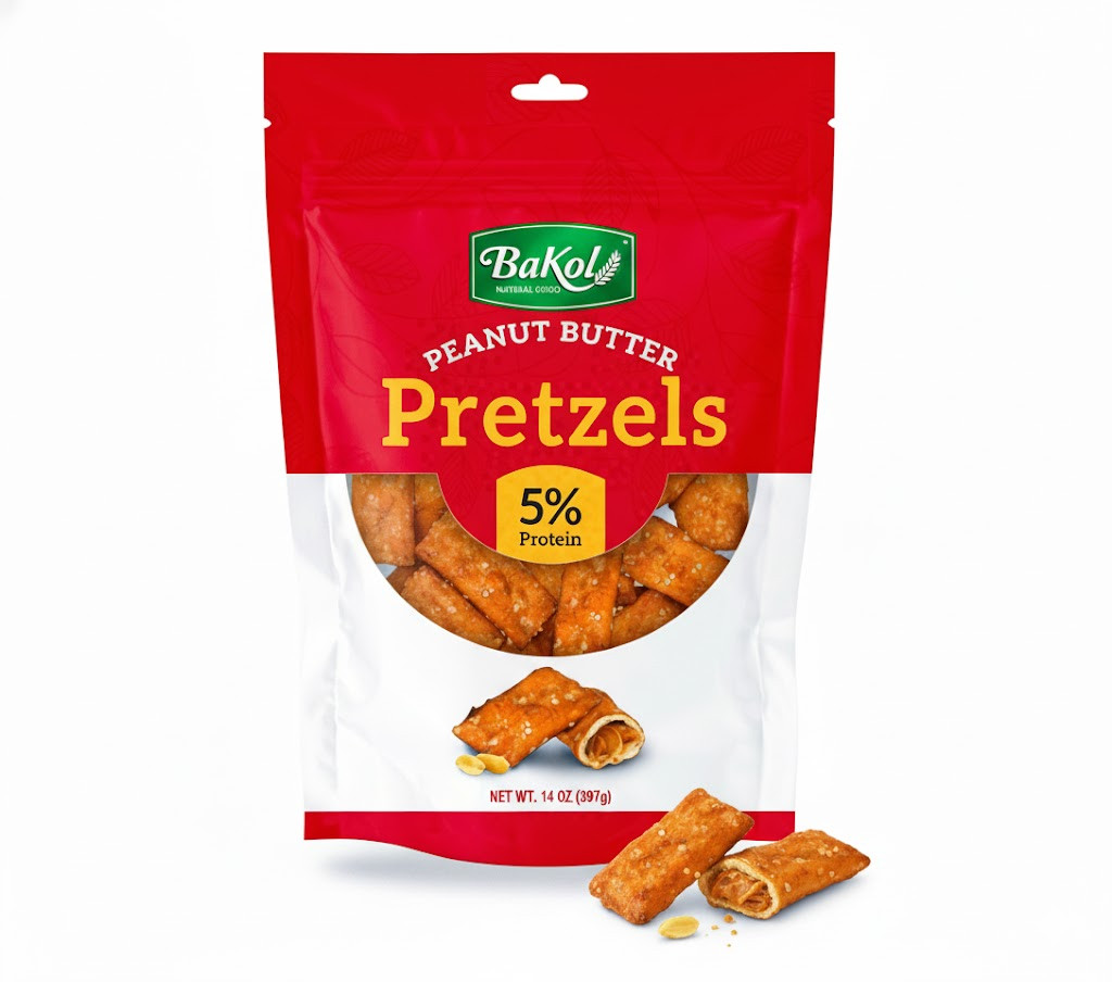 - Bakol Peanut Butter Filled Pretzels, 14 oz, Kosher, High Protein Snack, Creamy Peanut Butter Center, Crunchy Pretzel Shell