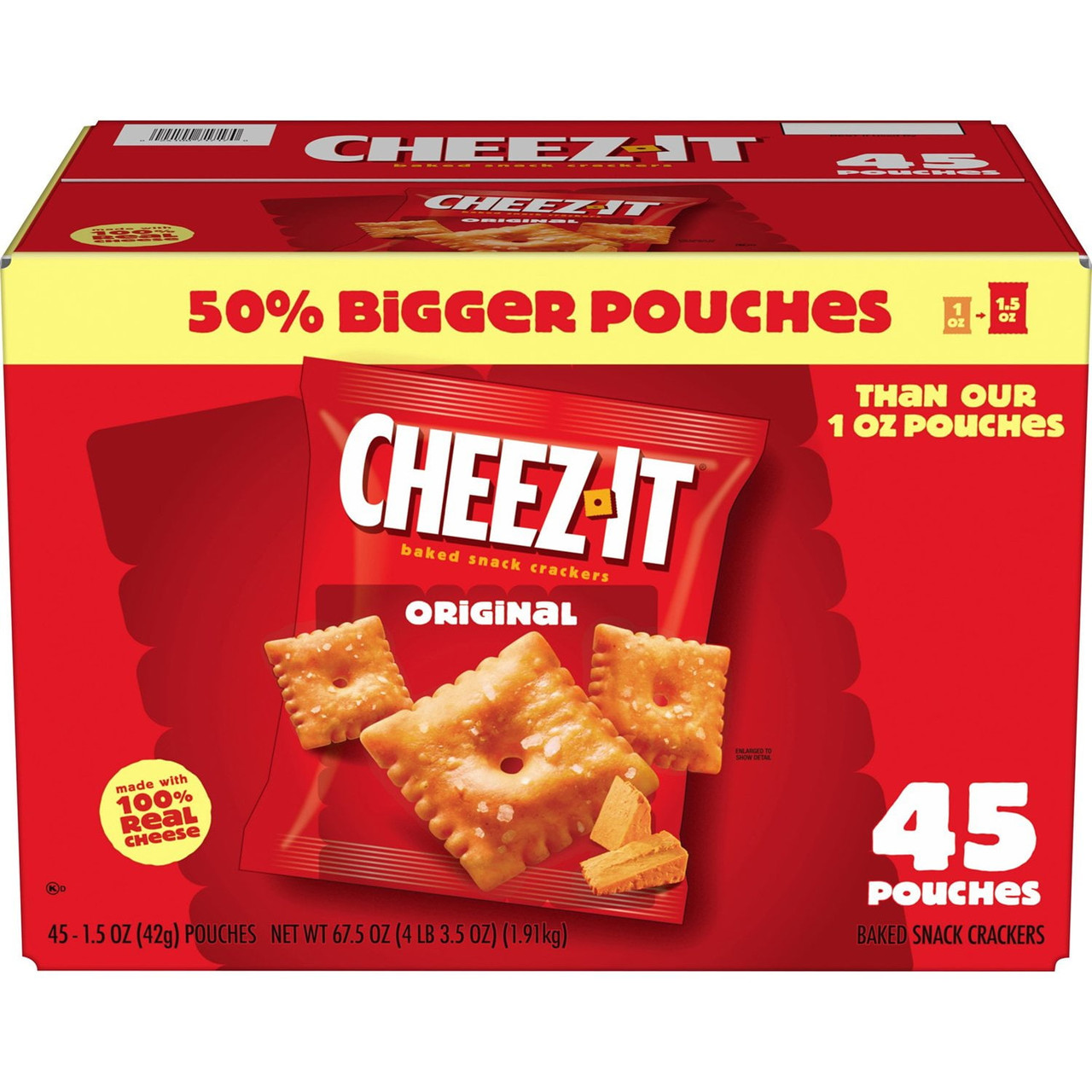 - Cheez-It Original Baked Snack Crackers, 100% Real Cheese, 45 Count Individual Pouches, 1.5 oz Each, Bulk Pack