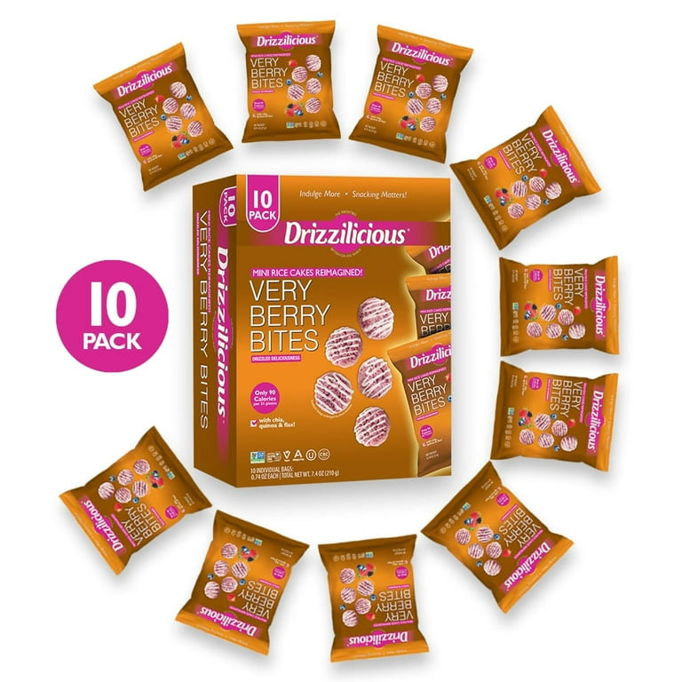- Drizzilicious Mini Rice Cakes, Very Berry Bites, Vegan, Gluten-Free, Allergen-Free, Non-GMO, 90 Calories, 0.74 oz (Pack of 10)