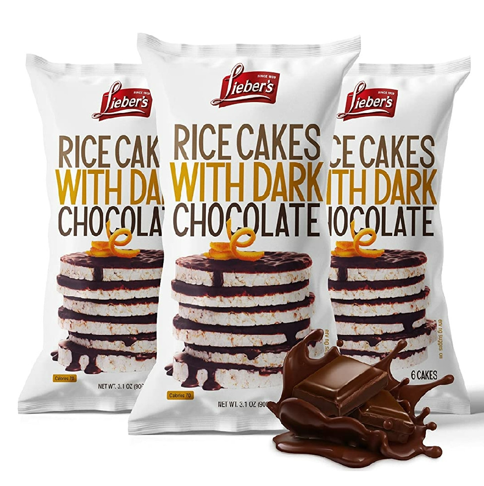 - Lieber's Dark Chocolate Covered Rice Cakes, Gluten-Free, Dairy-Free, Kosher, 70 Calories per Serving, (3 Pack)