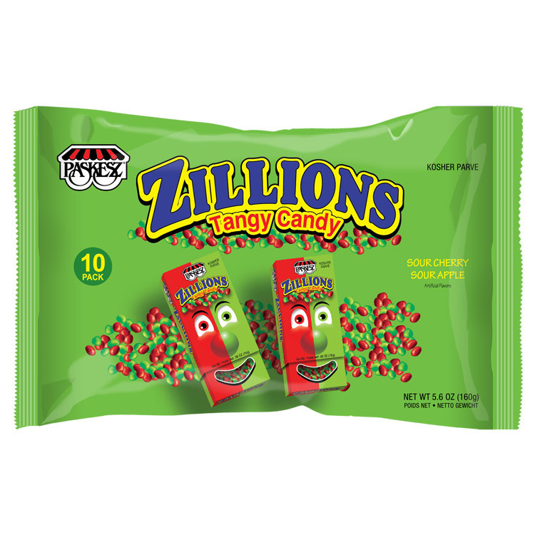 - Paskesz Zillions Tangy Candy, Sour Cherry and Apple Flavors, Kosher Parve, Individually Wrapped, 10 Count